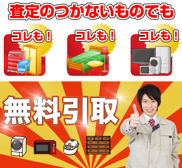 ※ベッドマット、ソファ、植木、10年以上前の家電など対象外の品目もあります。詳細は担当にお尋ね下さい。