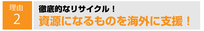 資源化出来るもの、使用可能な家具家電を海外に向け支援活動の一環として提供しております。