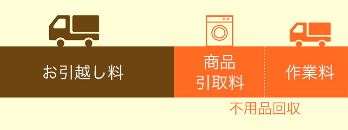 一般的には、お引越し料・商品引取料・不用品回収の作業料をお支払いすることになります。