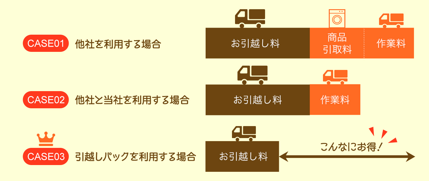 引越しパックではお引越しのときに不用品回収作業を一緒に行うので、不用品の回収にかかる作業料を無料にできるんです!